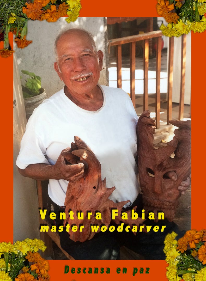 Ventura Fabian (1938-2019) was one of Oaxaca’s most renown makers of the hand-carved, brightly painted wooden figures, now known as “alebrijes,” for which Oaxaca has become well-known.