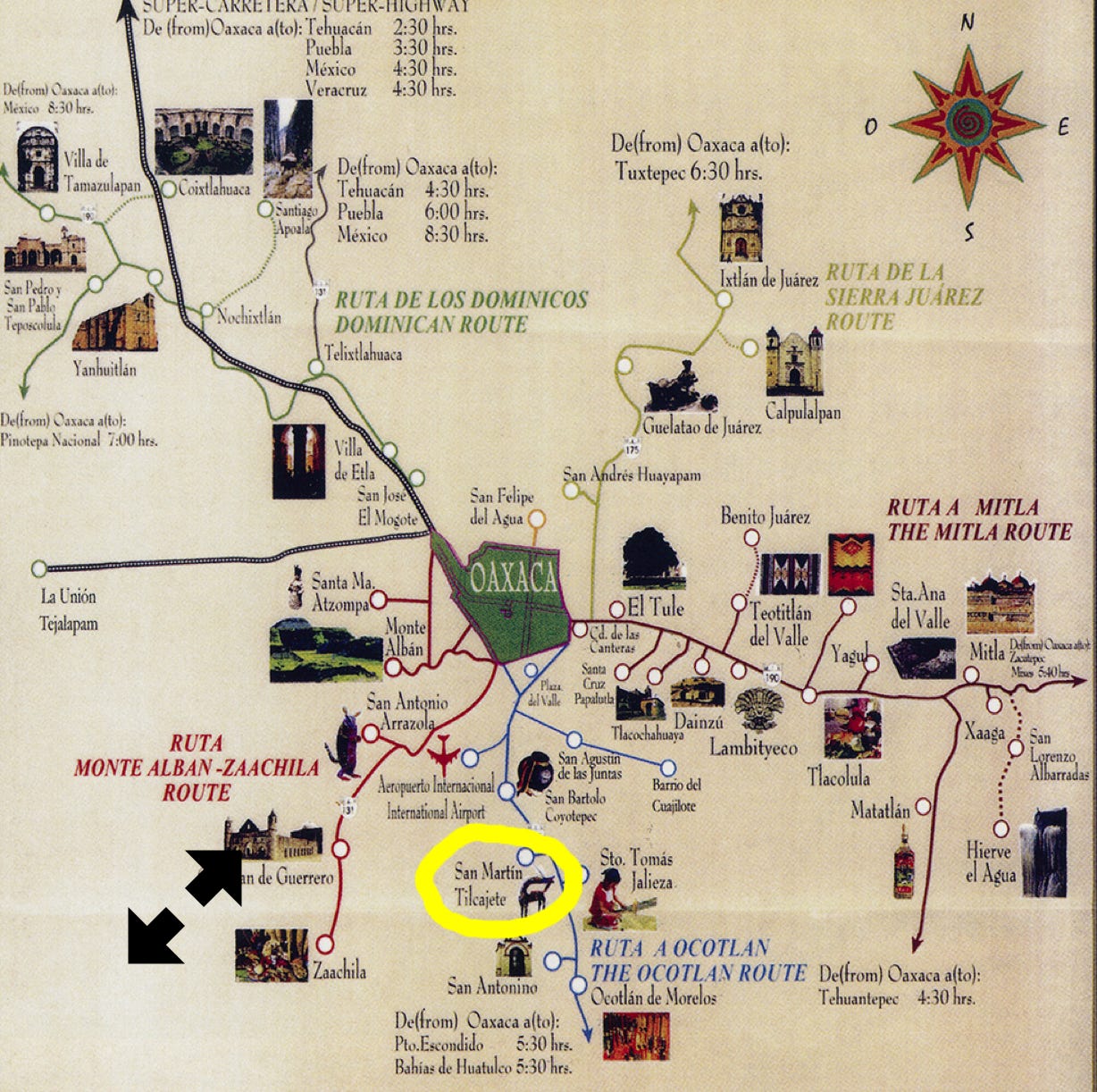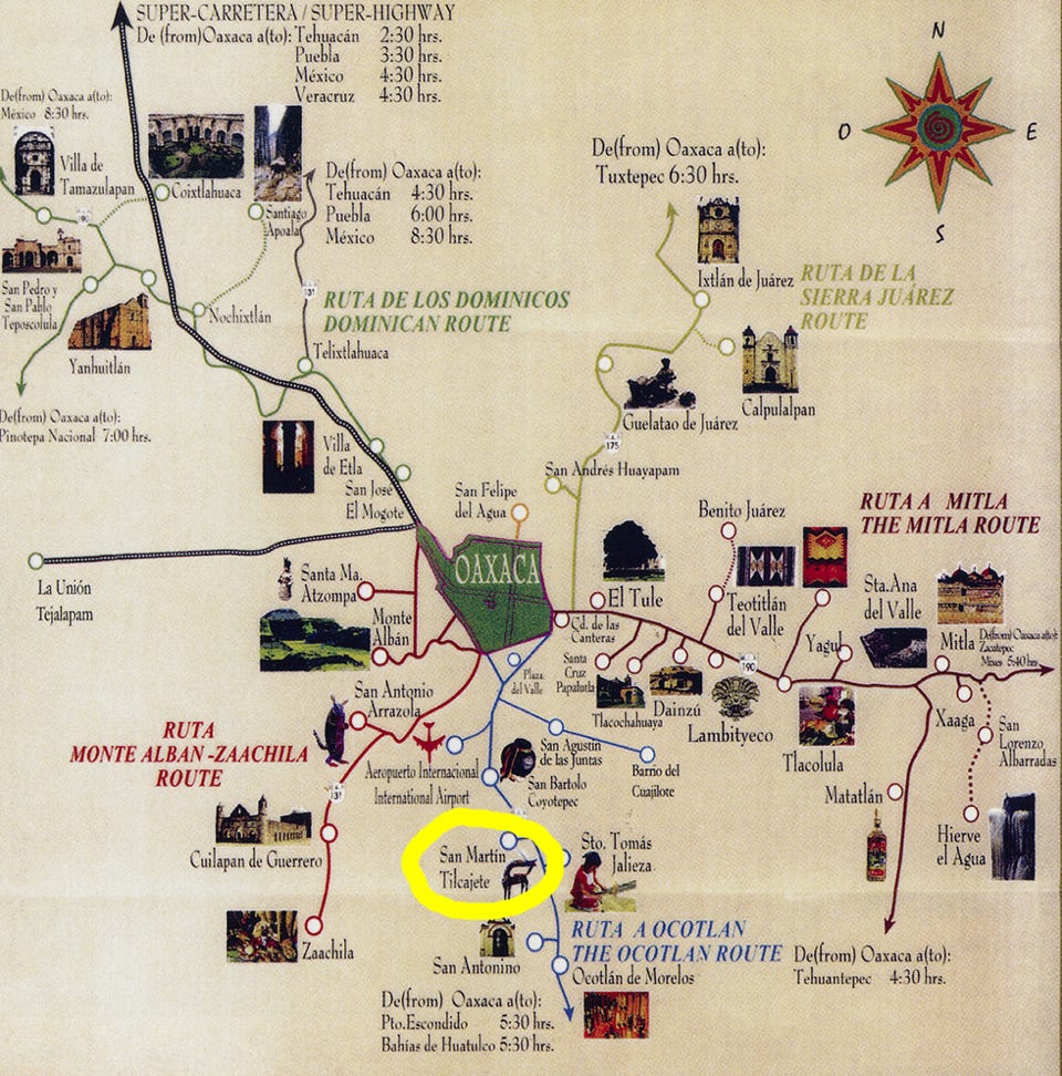 San Martín Tilcajete, 23 km from Oaxaca city, is a picturesque small pueblo with a population of only 1,900. Most of the families who reside there make their living from a combination of subsistence farming and woodcarving.