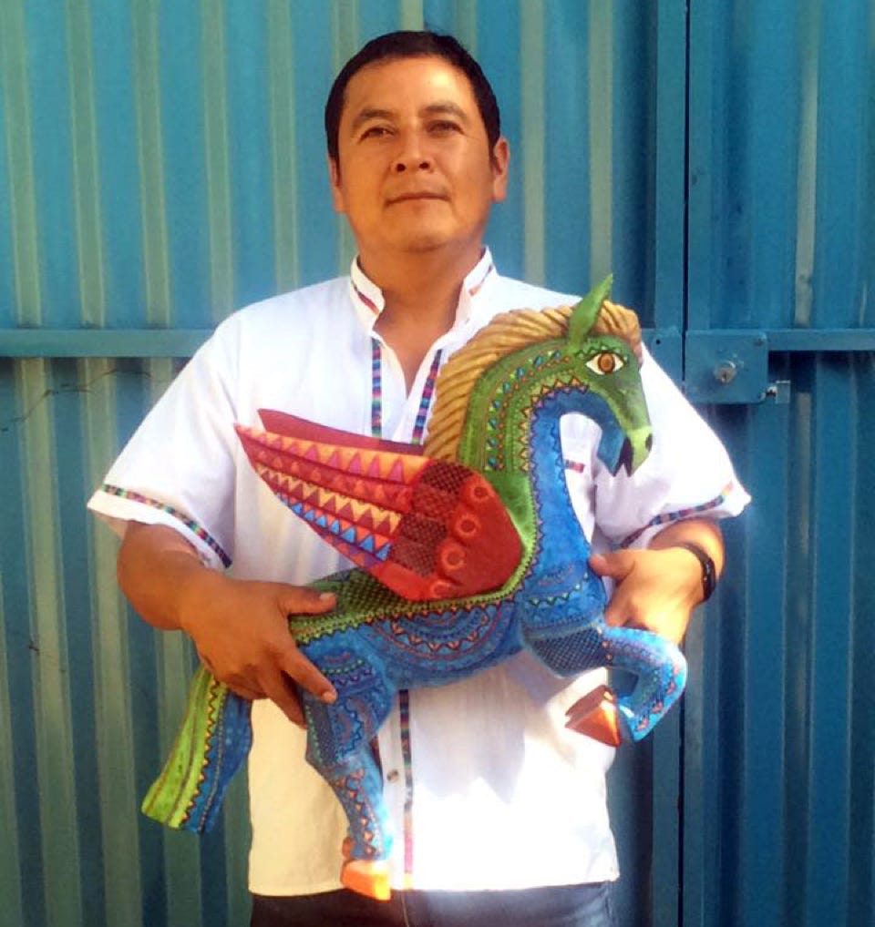 By incorporating Zapotec motifs onto the carvings “we are proud to be able to transmit our culture to the outside world.” Although inspired by the Zapotec tradition, this devout, tranquil artist continually invents mesmerizing patterns and new painting techniques for their carved figures.